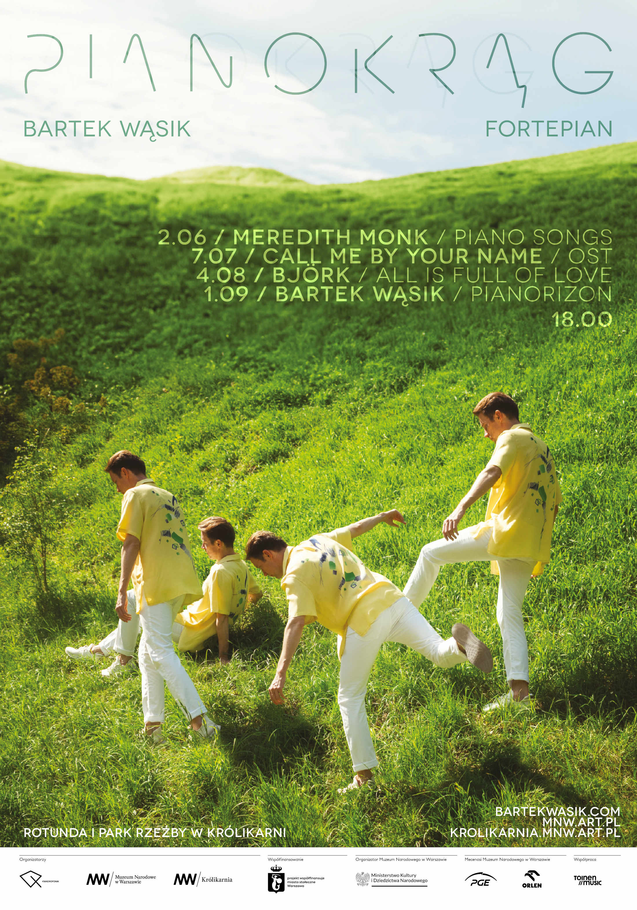 Літо кохання... ці два слова найкраще описують цьогорічний цикл літніх концертів Бартека Вонсіка - Pianokrąg. З червня по вересень піаніст разом із варшавською публікою святкуватиме цю пору року в палаці в Крулікарні та парку скульптур навколо.